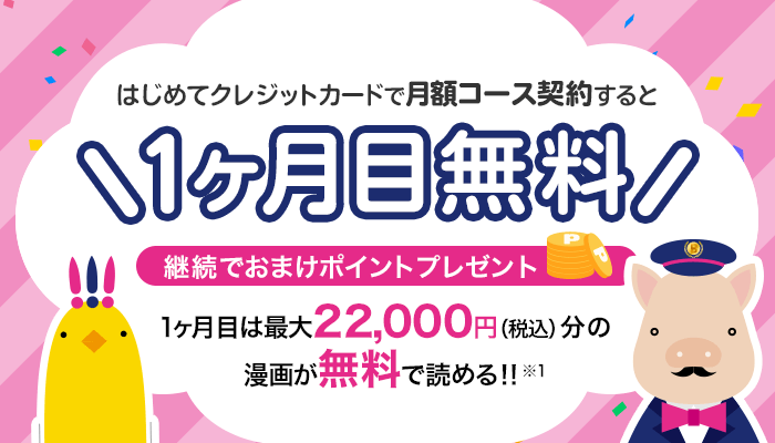 月額コース契約すると1か月目無料!単品もありますが、月額コースはポイントが増えておトク。非会員でも無料購読作品あります。